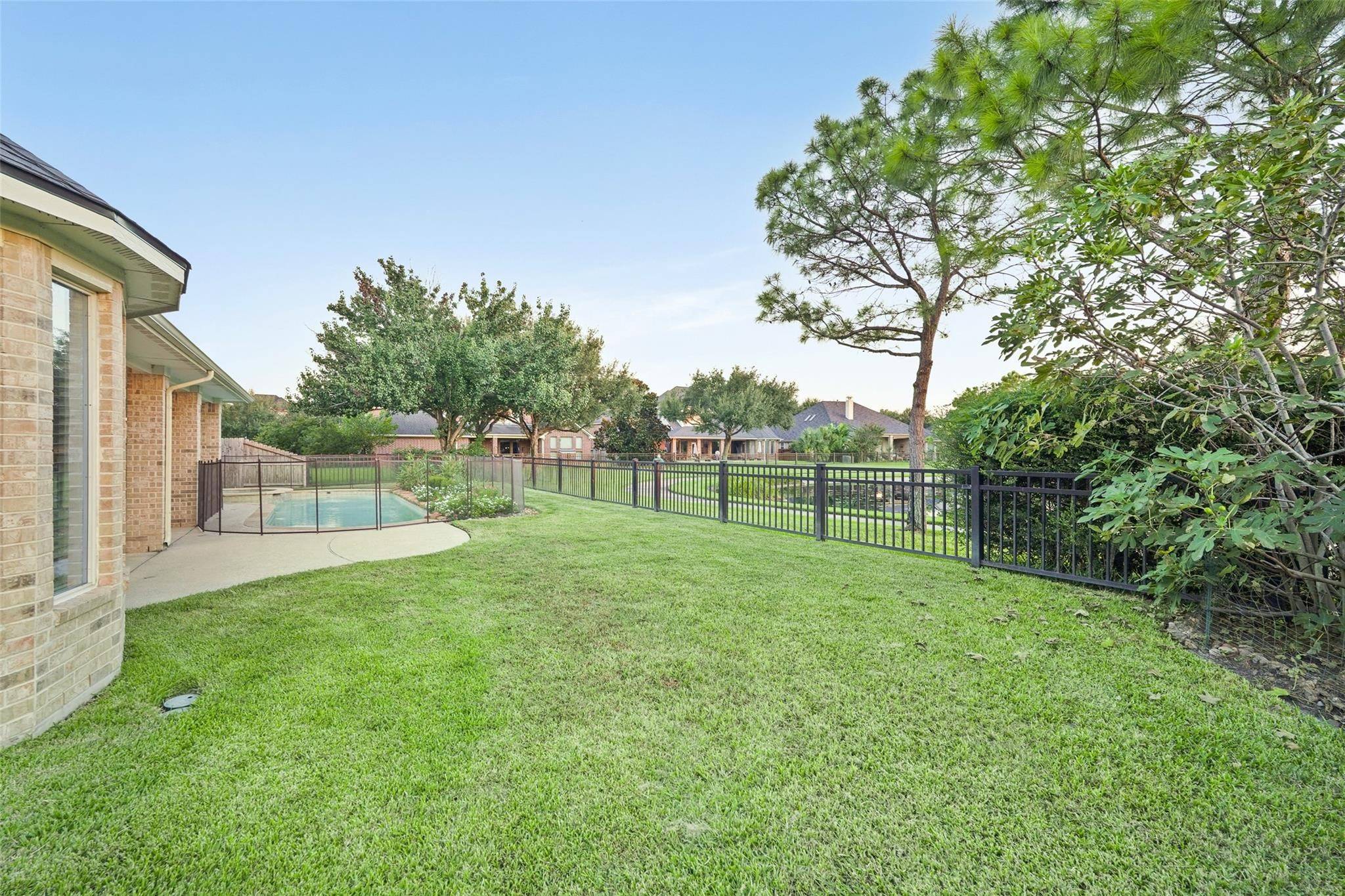 Waterfront living in Grand Lakes! Set on a serene lake with a walking trail, this home captures sweeping water views from the family room, breakfast area, and luxe first-floor primary suite. An open layout features tile flooring, arched openings, a fireplace, and an island kitchen with abundant cabinetry and a breakfast bar. Work and play spaces abound with a private study, plus an upstairs game room and adjacent flex/office with built-ins. Two secondary bedrooms share a Jack-and-Jill bath; a third is served by a nearby full bath. The primary retreat offers a curved wall of windows and a spa-style bath with dual vanities, soaking tub, glass shower, and an oversized custom closet. Outside: a large covered patio and sparkling pool & spa with removable safety fence, all framed by an iron fence to the lake. Major updates: roof (2023) and AC (2022). Never flooded. Enjoy Grand Lakes' parks, lakes, trails and resort-style pools. Schedule your private tour today!